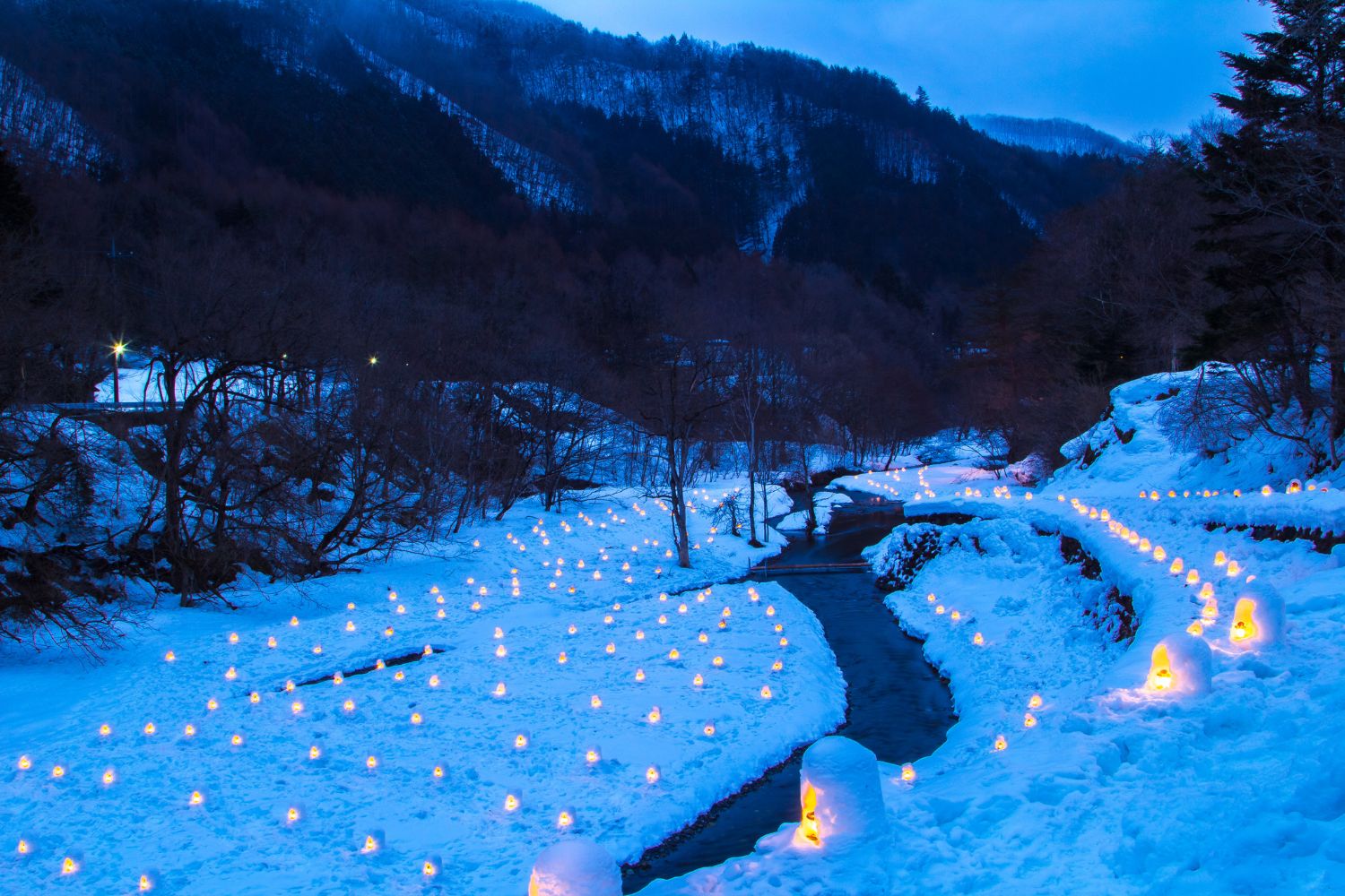 Yunishigawa biến thành một thế giới tuyết lung linh với hàng trăm kamakura nhỏ phát sáng dọc bờ sông Sawaguchi. Lễ hội năm nay diễn ra 30/1 – 1/3/2026.