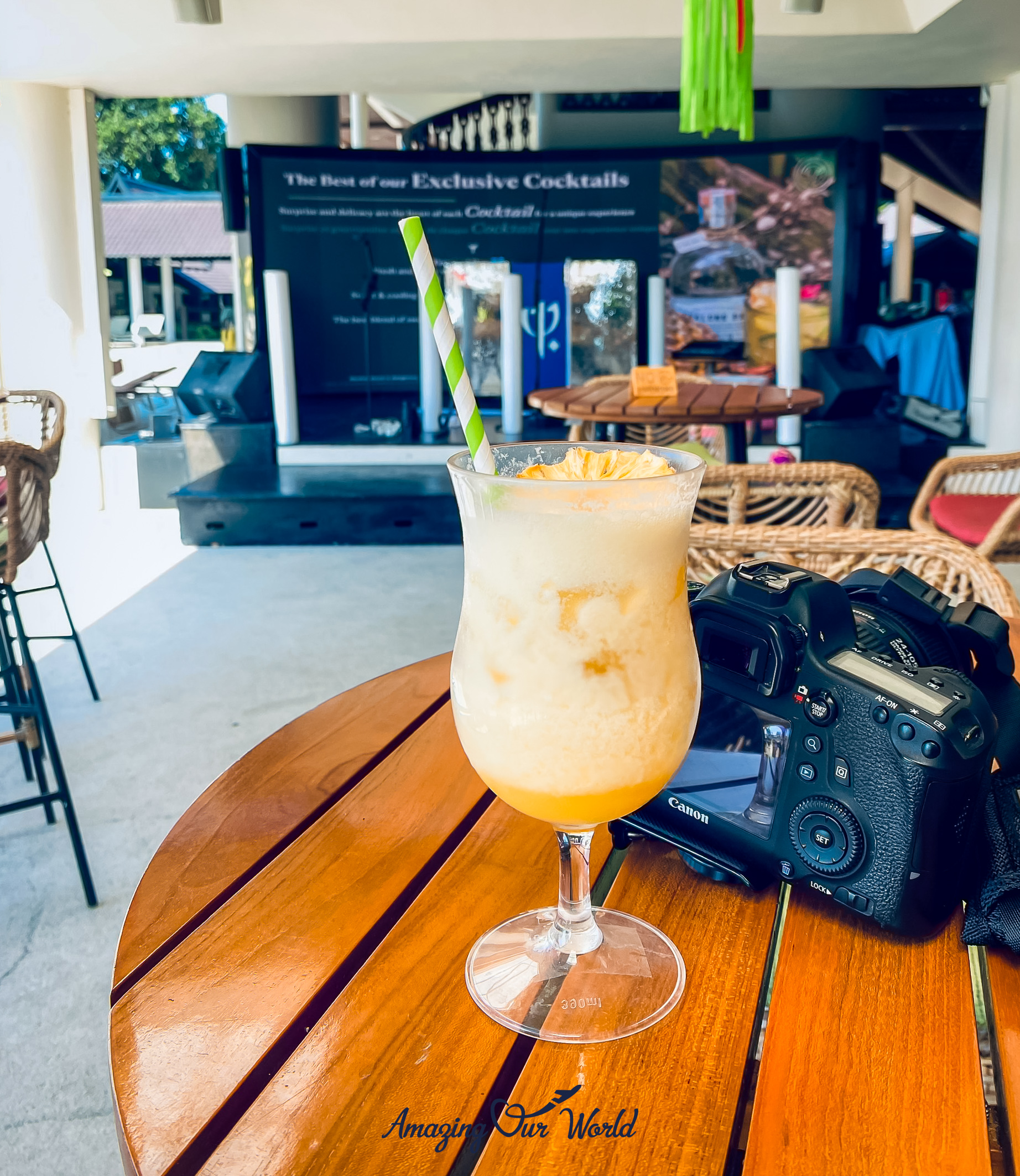 Điểm nhấn “say sưa” nhất không thể bỏ qua tại tất cả các Club Med, và tại Club Med Phuket chính là thực đơn nước uống đa dạng đủ thể loại từ mạnh tới mix nhẹ đã bao gồm trọn gói làm ,cho bạn trải nghiệm xả láng rồi nghiền từ từ . Từ những ly cocktail màu sắc, nước ép trái cây tươi mát, bia thì Thái Lan quá nổi tiéng rồi không thể nào chê vào đâu được, cho đến các loại rượu vang được chọn lọc kỹ càng, xin nhắc lại uống không giới hạn, bản thử tưởng tượng xem một ly cocktail với rươu vang có giá bao nhiều ở bên ngoài bình thường cũng đã rất đắt tiền rồi huống chi ở đây là resort nghỉ dưỡng mà lại được uống thoải mái còn gì sung sướng hơn, mọi thứ đều được phục vụ không giới hạn, đặc biệt quầy bar gần hồ bơi nữa. Mỗi ngày điều có món signature của hôm đó cực ngon luôn