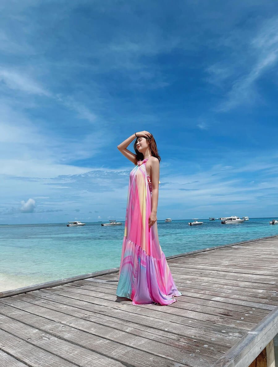 Diễn viên Huyền Lizzie là một trong những ngôi sao trẻ nổi tiếng của làng giải trí Việt Nam. Nàng nổi tiếng không chỉ vì tài năng diễn xuất mà còn bởi vẻ đẹp cuốn hút, thời trang sành điệu. Gần đây, Huyền Lizzie đã có chuyến đi nghỉ dưỡng tại Clubmed Kani và chia sẻ những bức hình cực đẹp với đầm, bikini tuyệt đẹp trên trang cá nhân của mình.