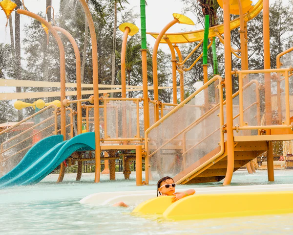 Có hồ bơi nông và khu vui chơi nước phù hợp với các bé, giúp trẻ vừa vận động vừa vui chơi an toàn.