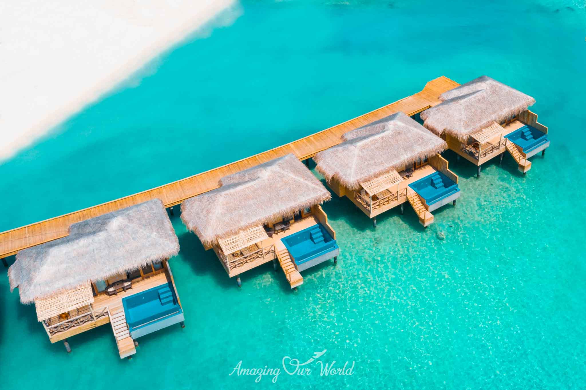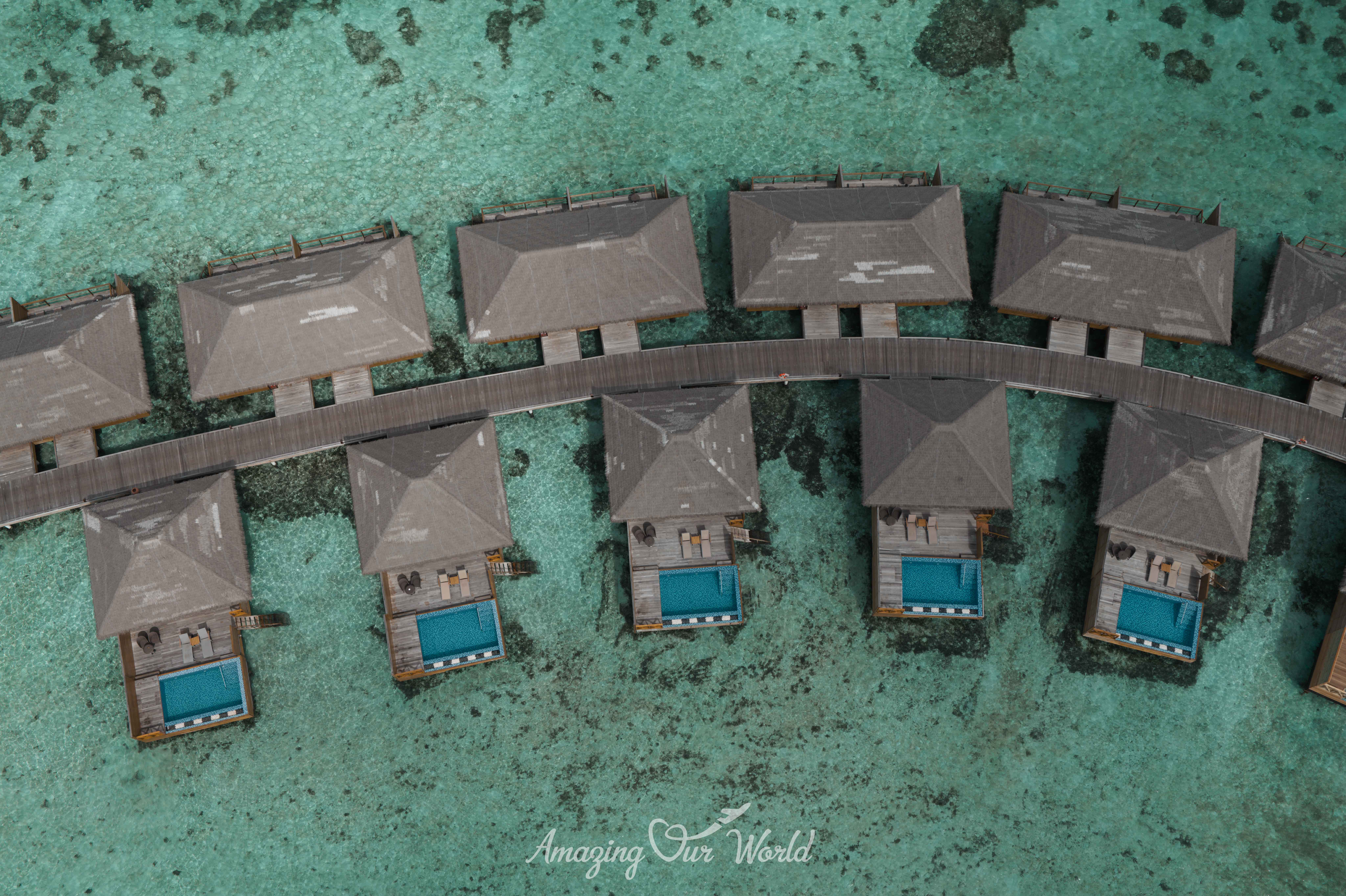Biệt thự trên mặt nước (Overwater Villas): 60 biệt thự, mang đến tầm nhìn tuyệt đẹp ra Ấn Độ Dương.