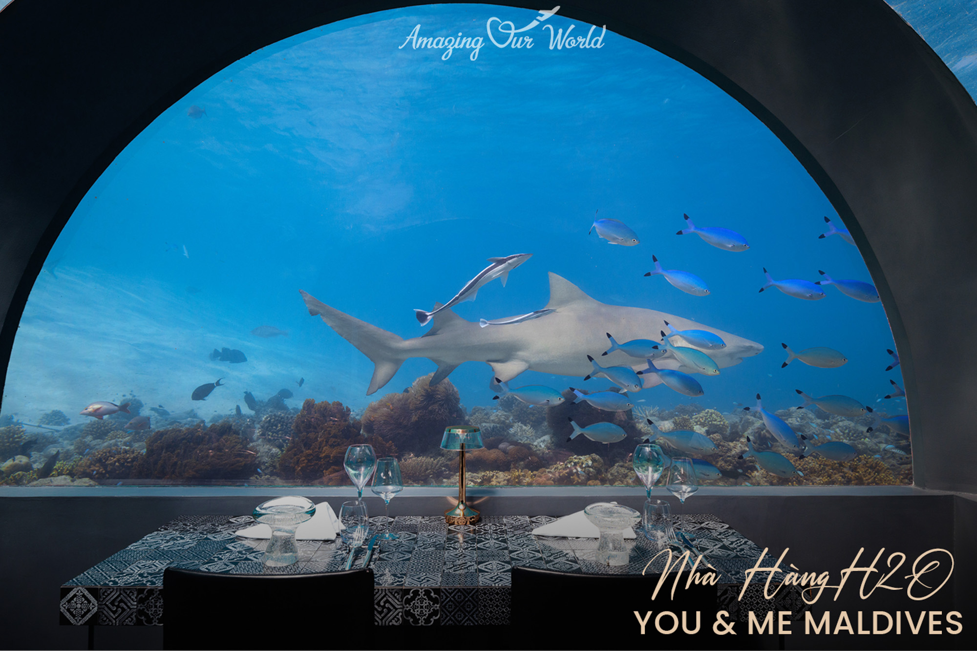 H2O là nhà hàng fine-dining toàn kính 360 độ, mang đến trải nghiệm ẩm thực độc quyền dưới lòng đại dương. Thiết kế kính trong suốt cho phép du khách ngắm nhìn đàn cá nhiệt đới bơi lội xung quanh trong khi thưởng thức các món ăn tinh tế.