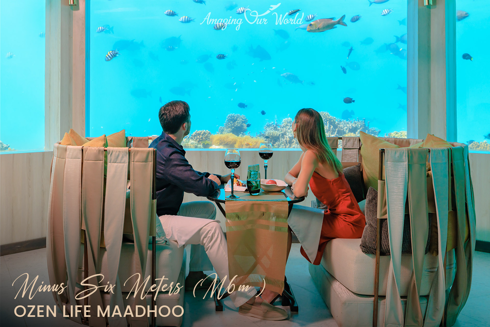 Nhà hàng M6m, đúng như tên gọi, nằm ở độ sâu 6 mét dưới mặt nước. Với thiết kế hiện đại và ánh sáng dịu nhẹ, nơi đây tạo nên một không gian thủy cung sống động với san hô và sinh vật biển đầy màu sắc.