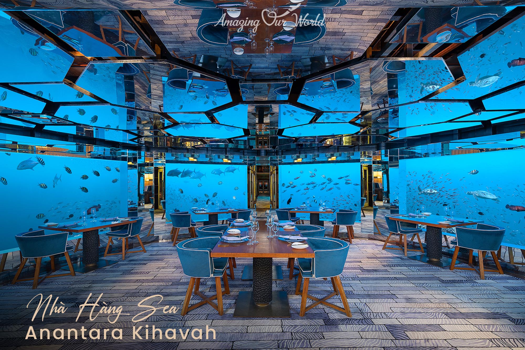 SEA Restaurant tại Anantara Kihavah là nhà hàng dưới đáy biển đầu tiên tại Maldives tổ chức trải nghiệm ẩm thực kết hợp công nghệ 3D. Với thiết kế sang trọng cùng tầm nhìn ra đại dương bao la, nơi đây là lựa chọn hoàn hảo cho những ai yêu thích sự xa xỉ tinh tế.