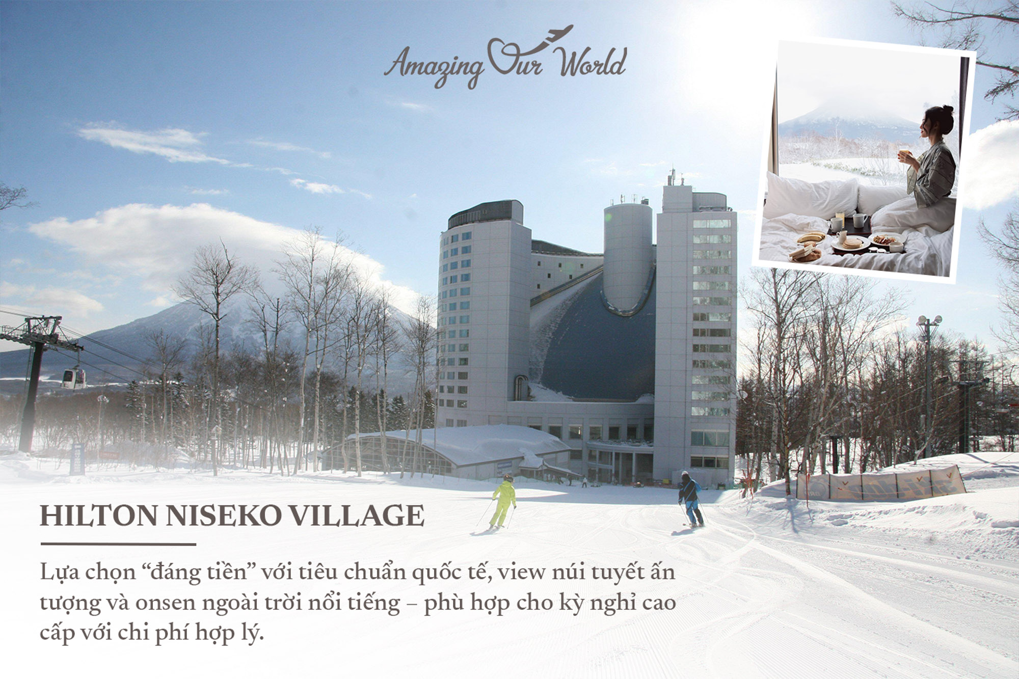 Hilton Niseko Village là lựa chọn quen thuộc với mức giá dễ tiếp cận hơn nhưng vẫn đảm bảo trải nghiệm cao cấp.
