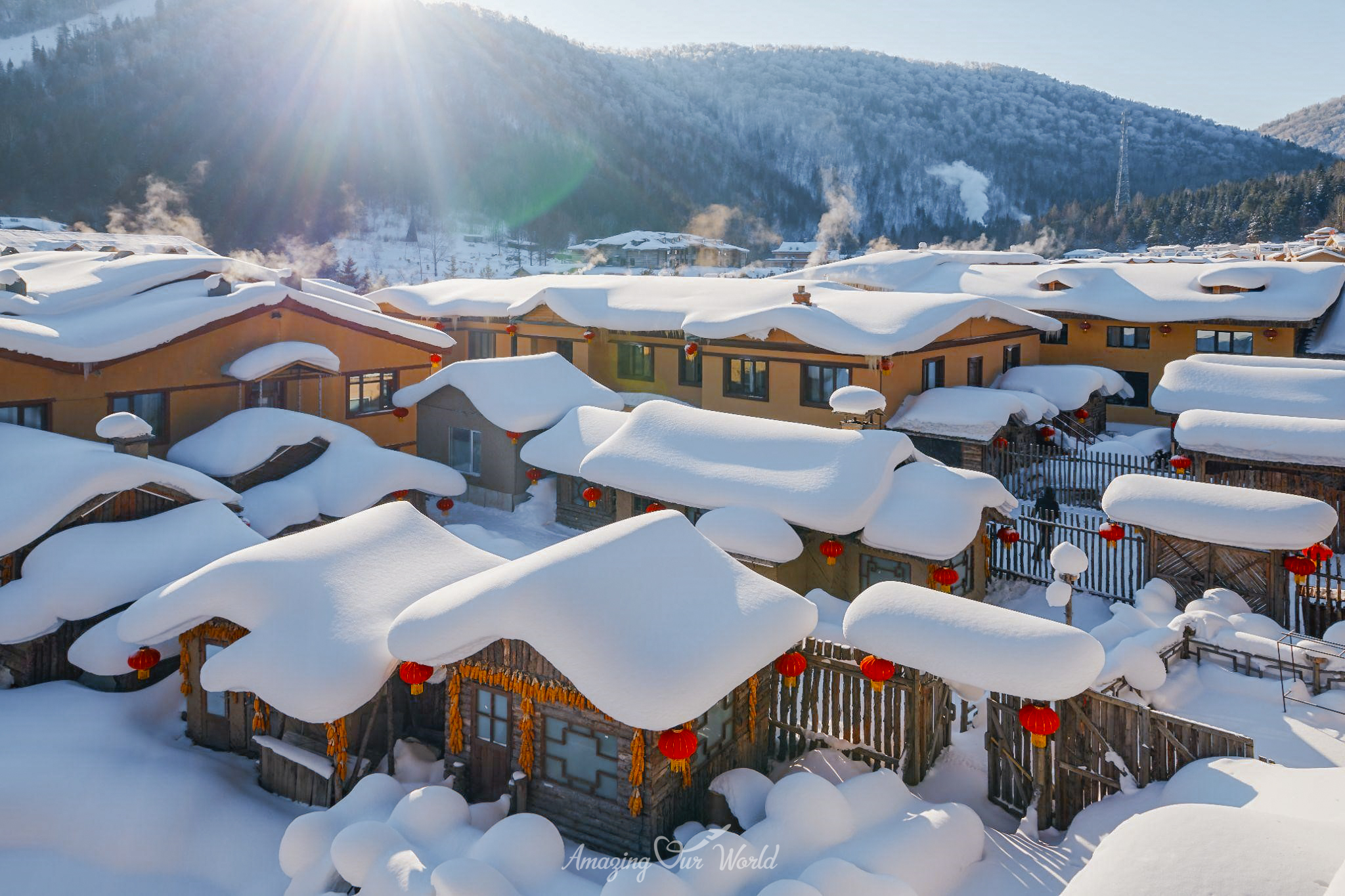 Bước vào Làng Tuyết Hương, bạn như lạc vào một câu chuyện cổ tích với những ngôi nhà phủ đầy tuyết trắng muốt. Khung cảnh yên bình, lãng mạn của làng khiến du khách như lạc vào thế giới thần tiên.