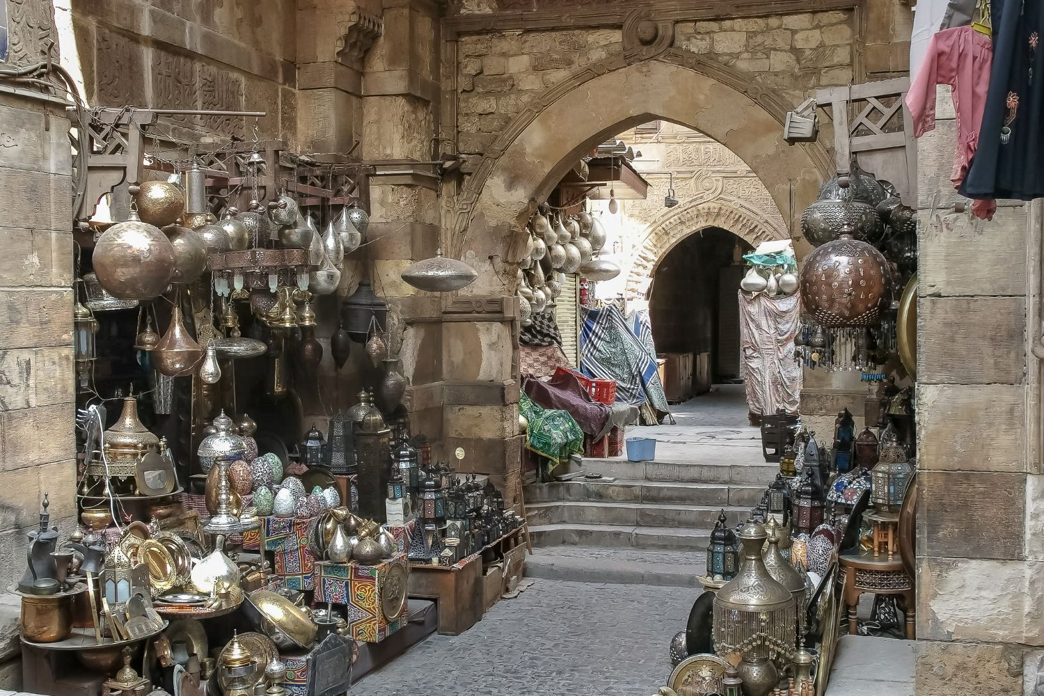 Chợ Khan El Khalili – khu chợ cổ nổi tiếng với đa dạng mặt hàng lưu niệm và đặc sản địa phương.