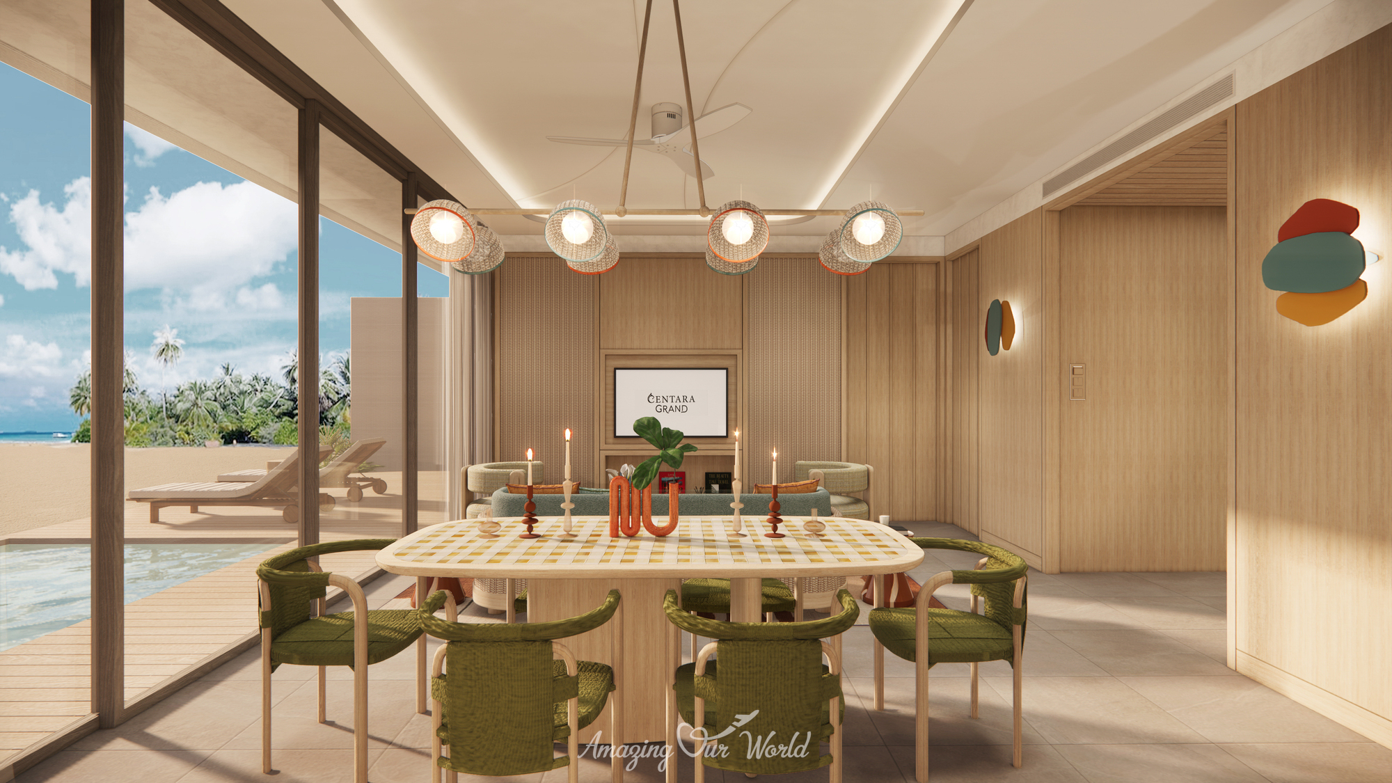 Biệt thự đẳng cấp nhất tại Centara Grand Lagoon Maldives – với không gian rộng lớn, ba phòng ngủ riêng biệt, hồ bơi riêng kèm cầu trượt và tầm nhìn trực diện hoàng hôn lộng lẫy. Thiết kế lý tưởng cho gia đình lớn hoặc nhóm bạn muốn tận hưởng trọn vẹn sự sang trọng, tiện nghi và riêng tư tuyệt đối trên mặt nước Maldives.