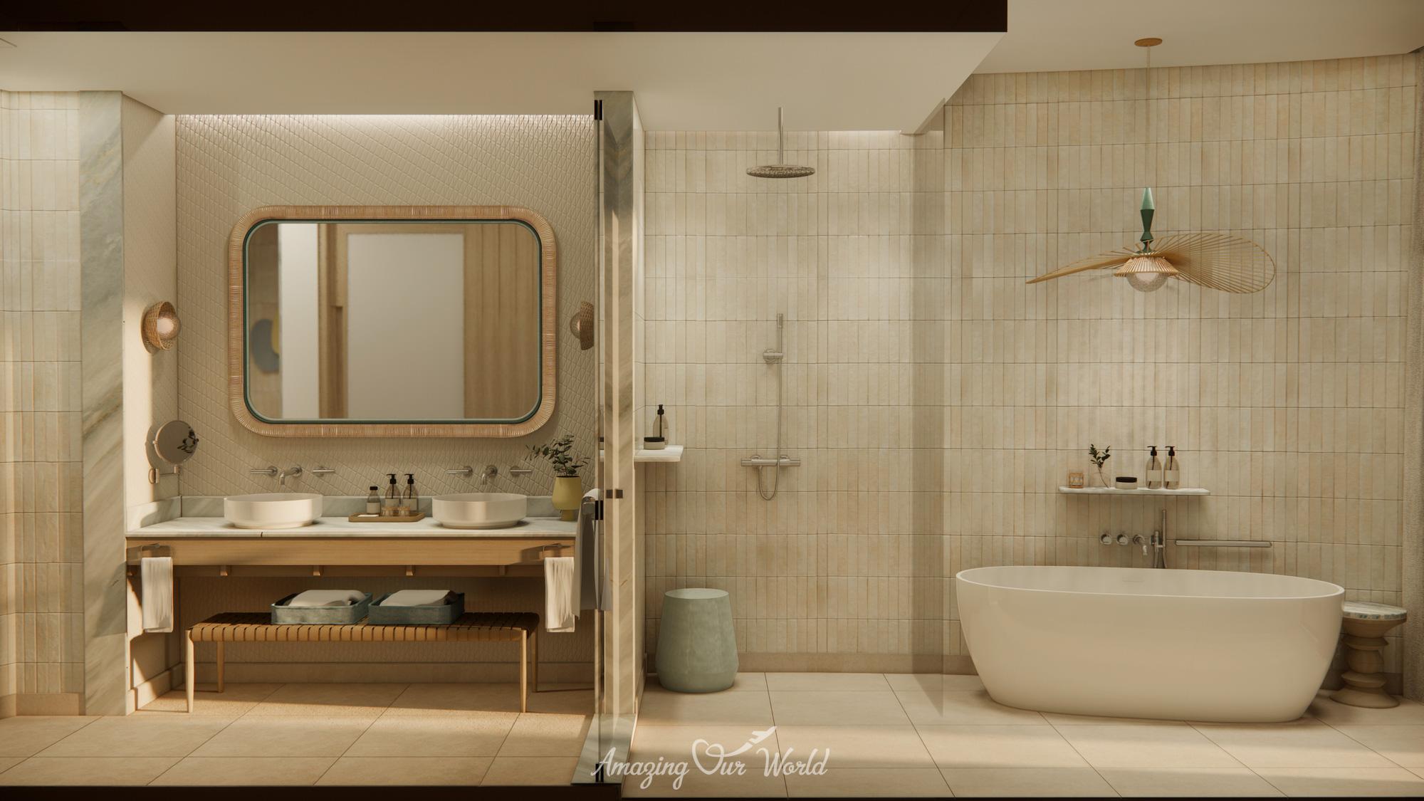 - Phòng tắm riêng với vòi sen và bồn tắm tách biệt