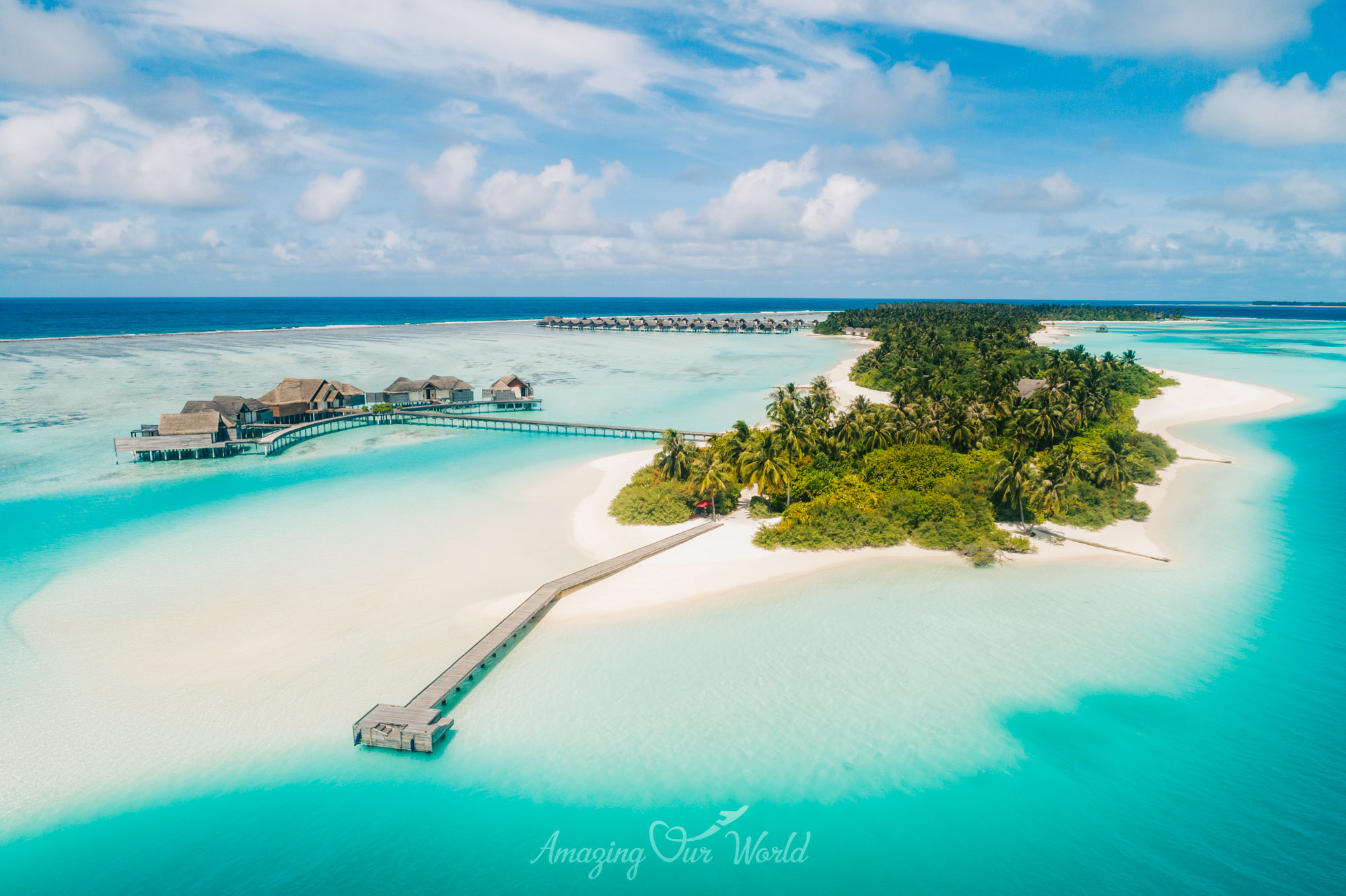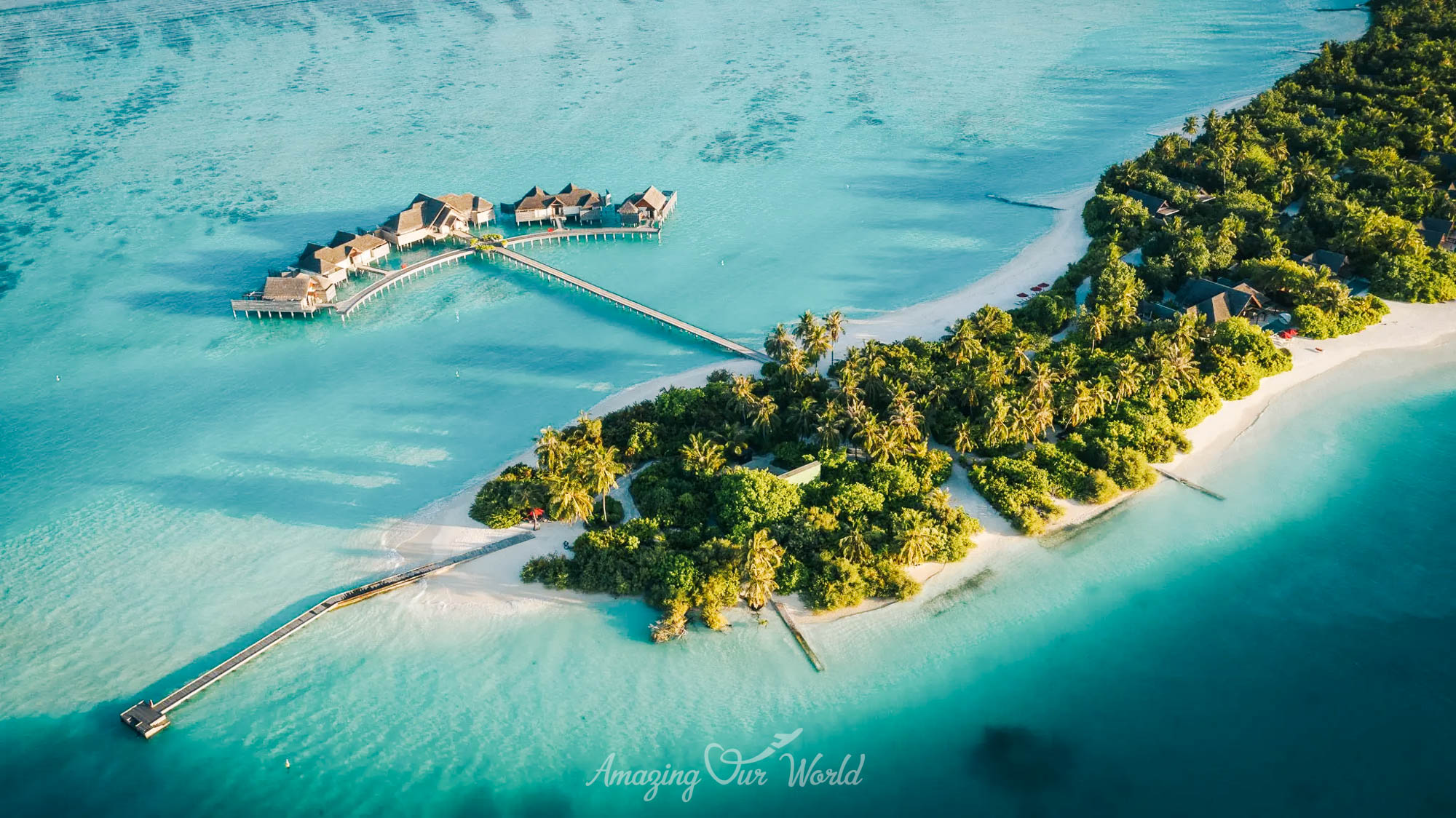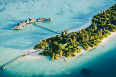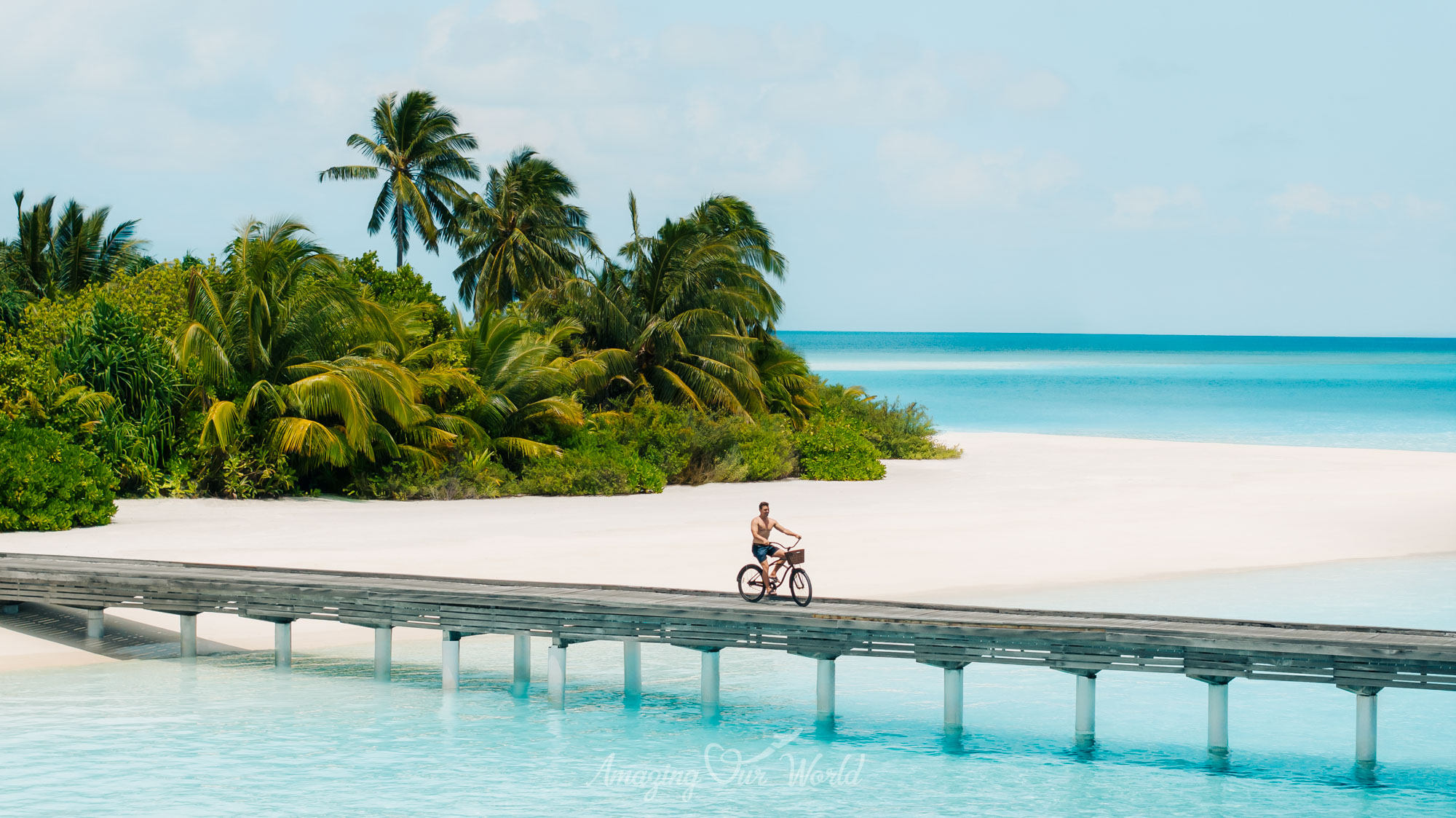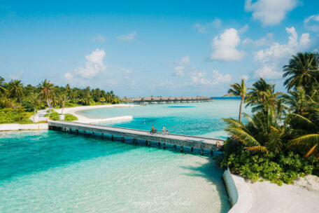 Hai đảo được nối với nhau bằng một cây cầu gỗ bắc qua lagoon, tạo nên trải nghiệm rất thú vị khi dạo bộ giữa đại dương.