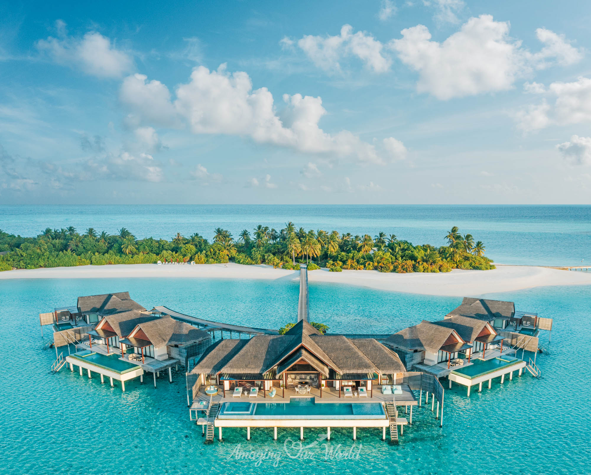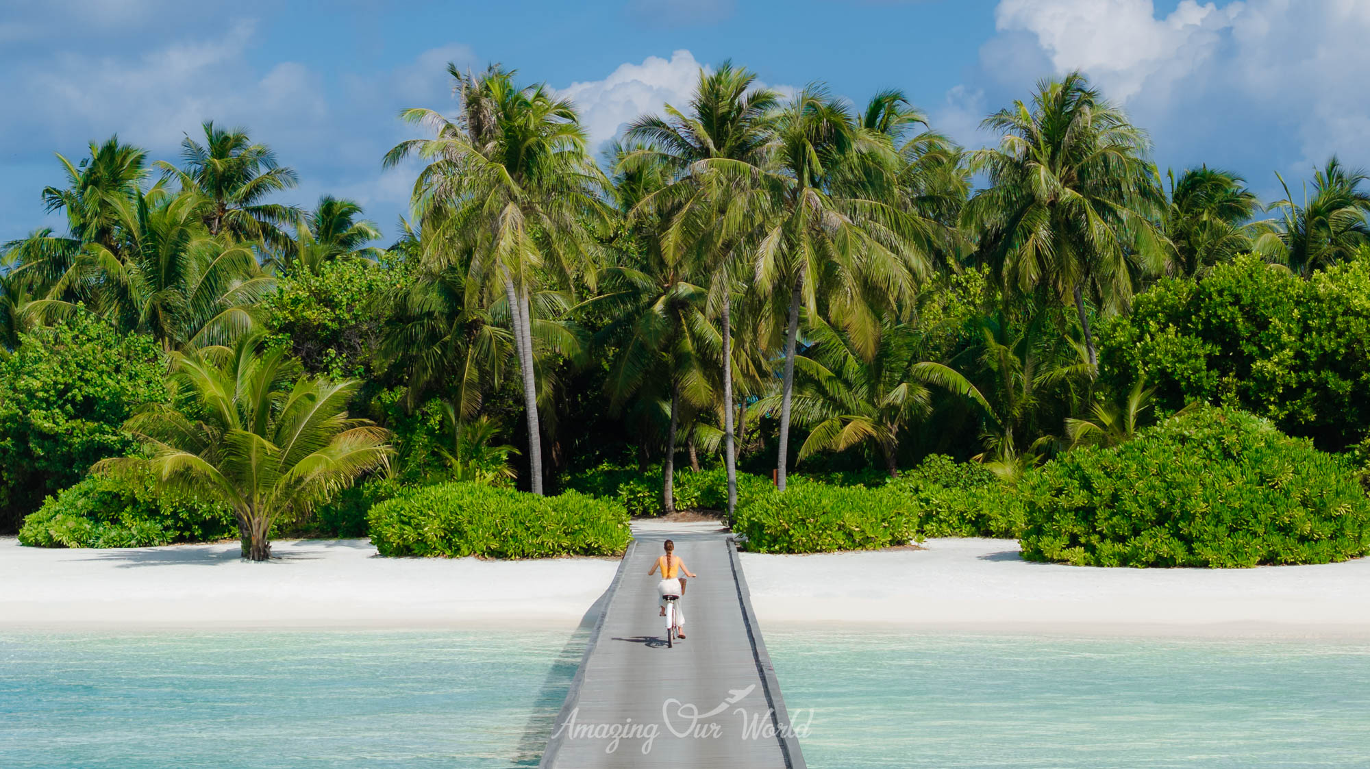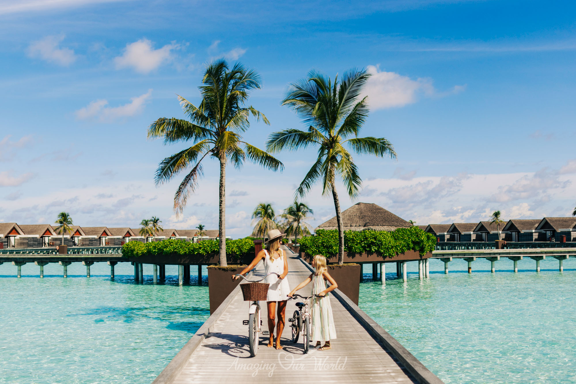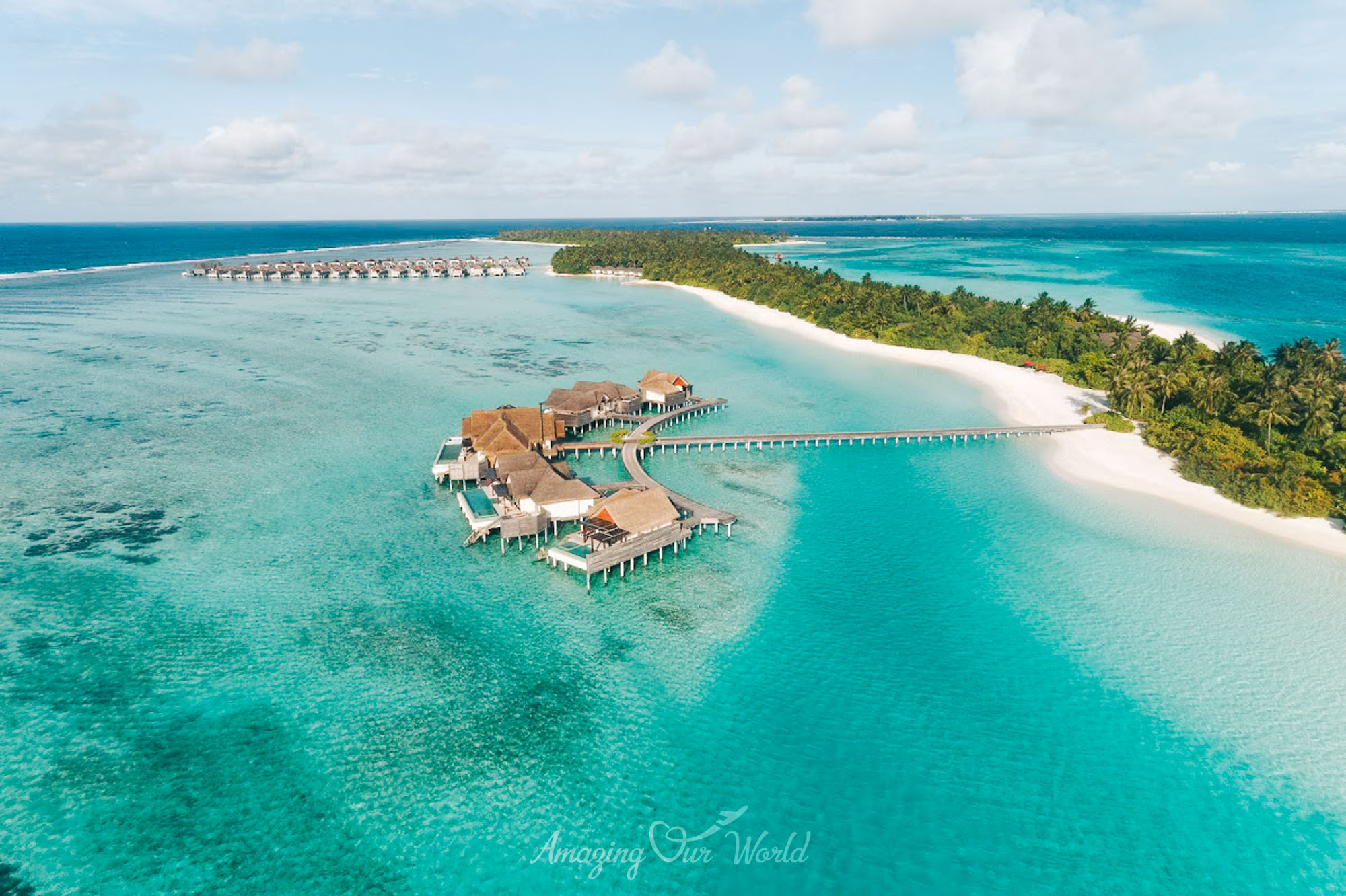 Hai đảo được nối với nhau bằng một cây cầu gỗ bắc qua lagoon, tạo nên trải nghiệm rất thú vị khi dạo bộ giữa đại dương.