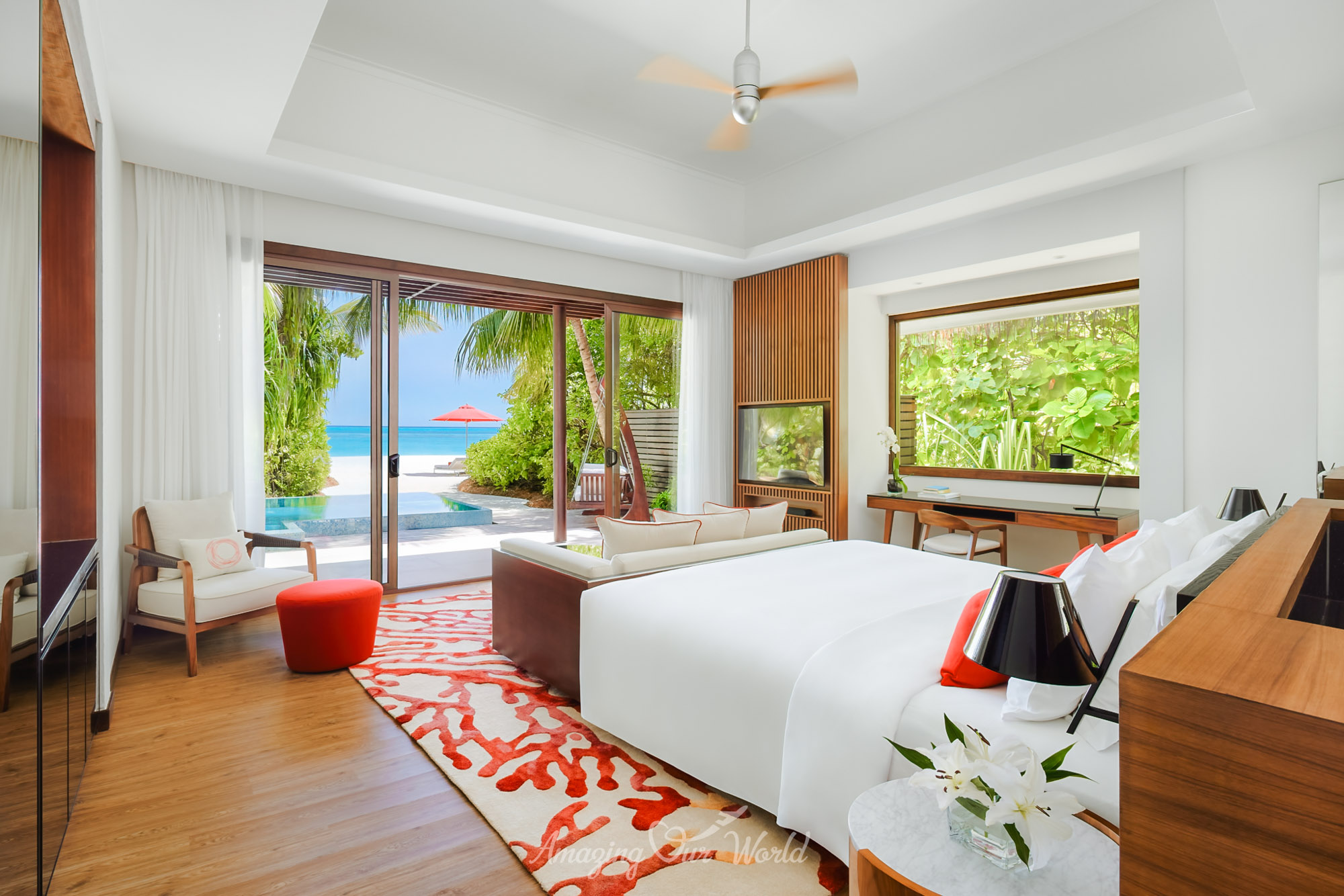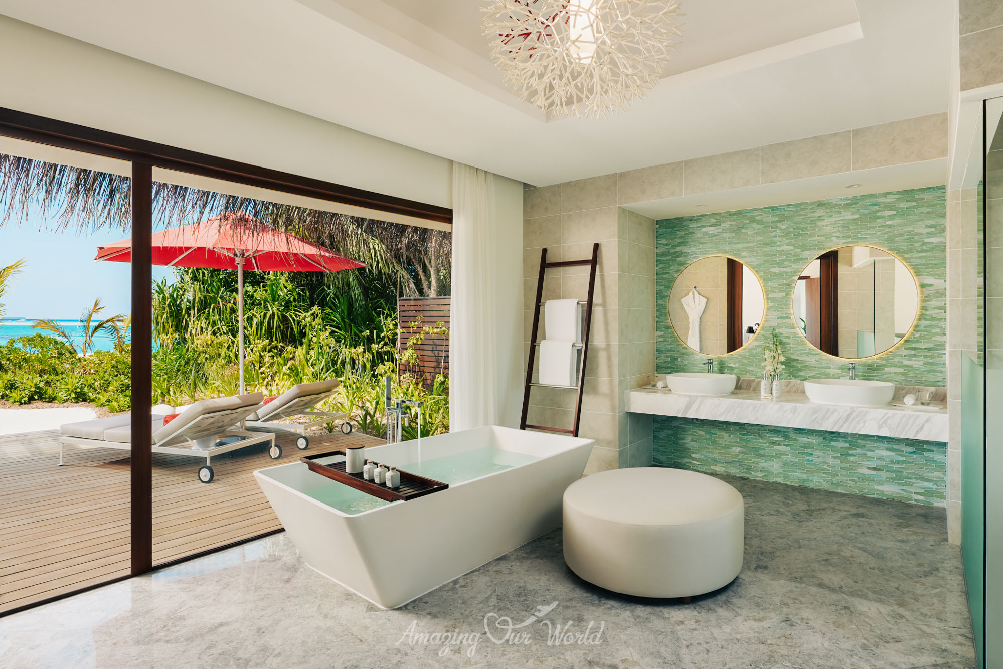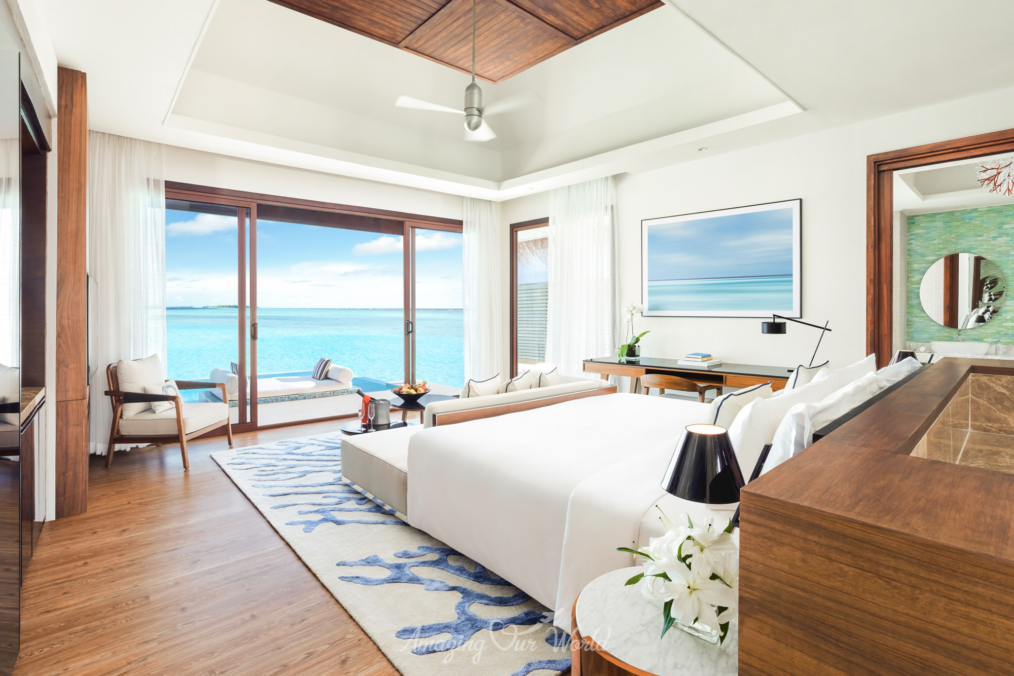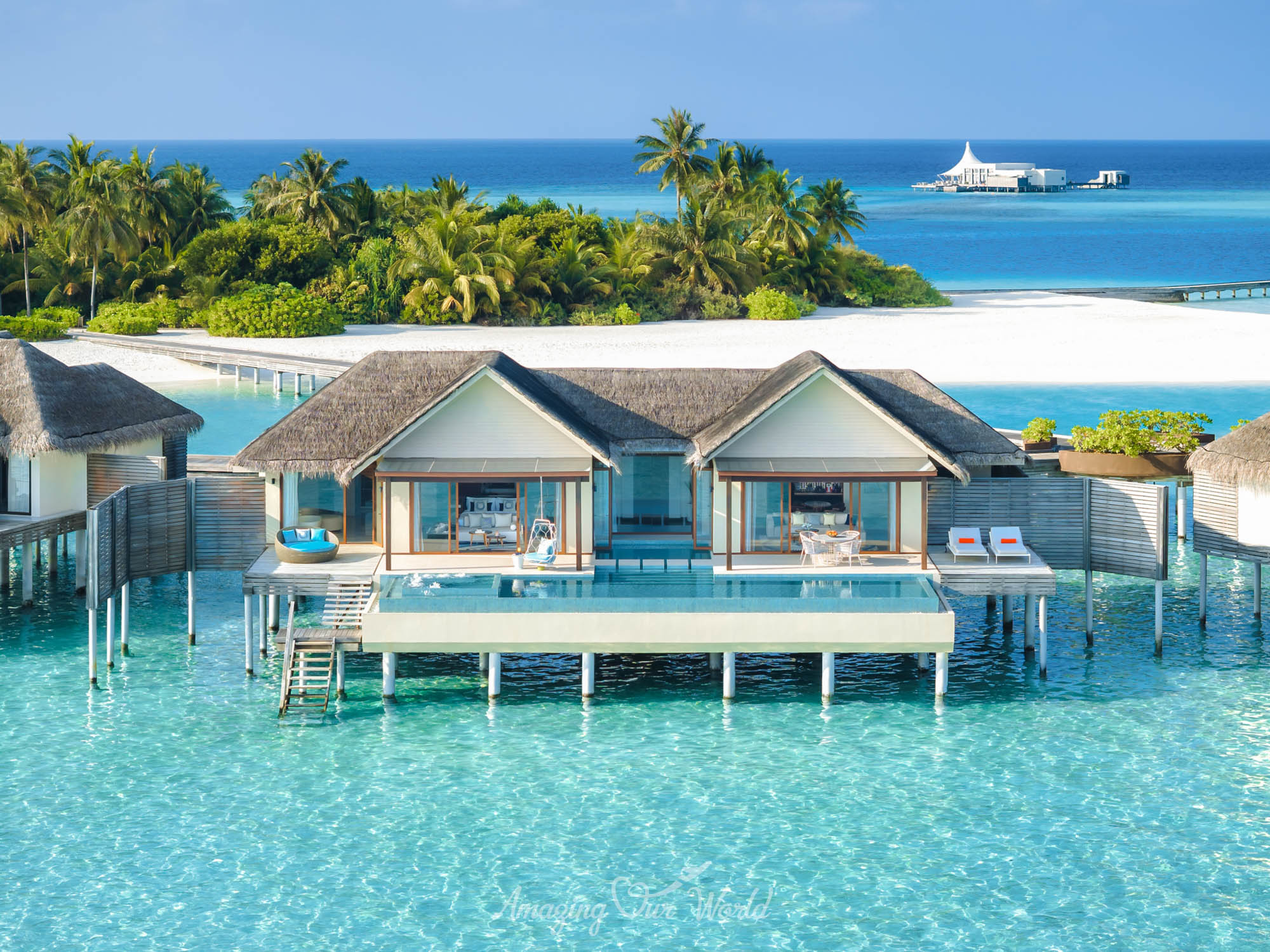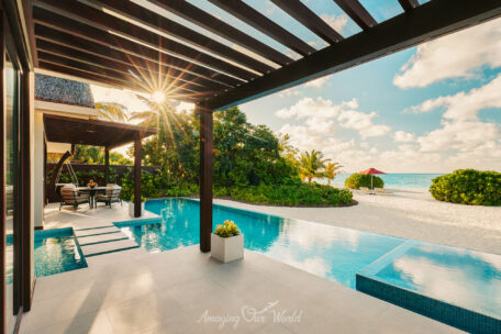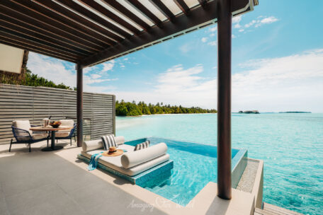 Trong khi đó, Overwater Villa lại mang đến trải nghiệm đặc trưng của Maldives với lối đi thẳng xuống mặt nước. Từ sân hiên villa, bạn có thể ngắm bình minh hoặc hoàng hôn trên đại dương, một khung cảnh khiến nhiều du khách nhớ mãi sau chuyến đi.