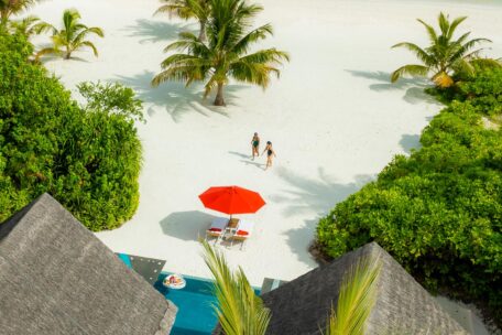 Các Beach Villa nằm dọc theo bãi biển, được bao quanh bởi hàng dừa và cây xanh, mang lại cảm giác rất riêng tư. Từ villa, du khách chỉ cần vài bước chân là có thể bước ra bãi cát trắng và đại dương xanh.